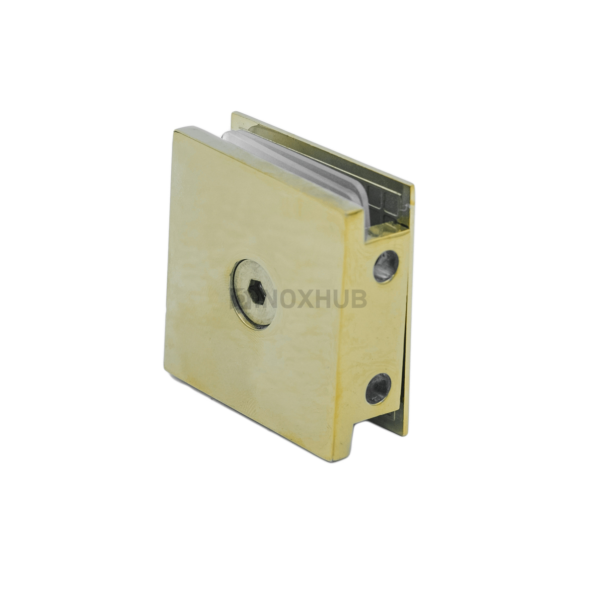 Коннектор для крепления неподвижного стекла душевой кабины изготовлен из цинкового сплава. Поверхность под золото устойчива к воздействию влаги, не теряет своих эстетических качеств со временем. Коннектор подходит для стекол толщиной 8-10 мм.