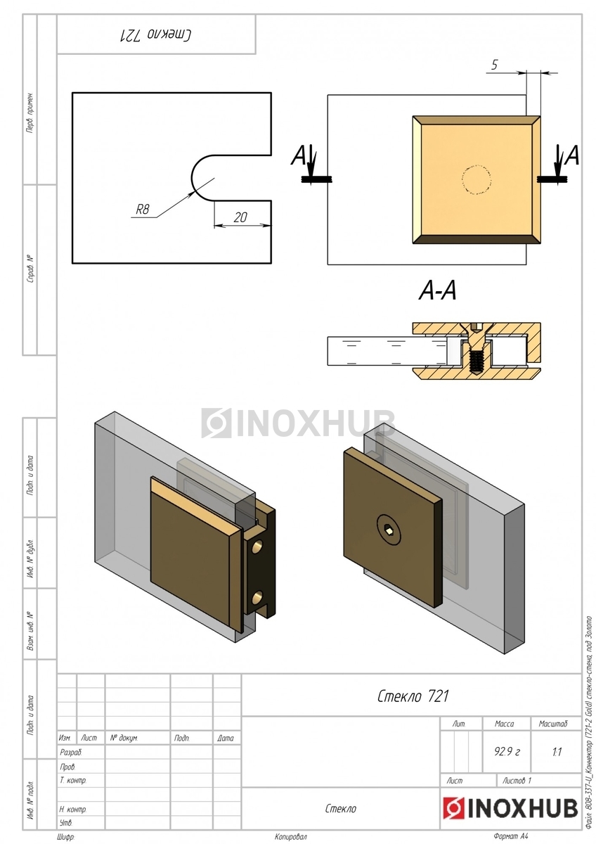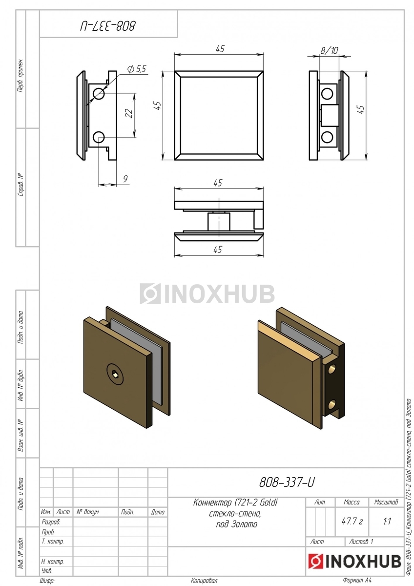Коннектор (721-2 Gold) стекло-стена, 2 отверстия, под Золото в продаже. Оперативная доставка со склада в Москве. Все товары соответствуют стандартам качества.