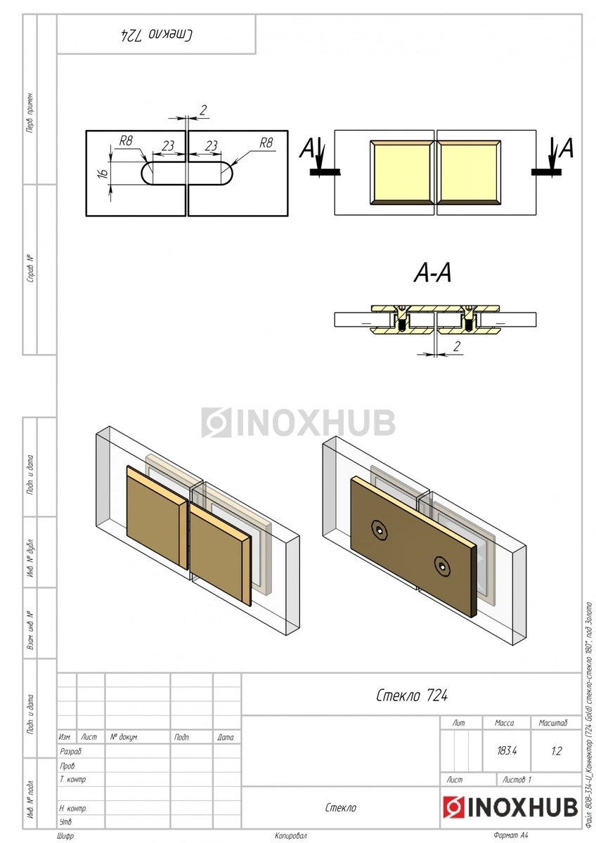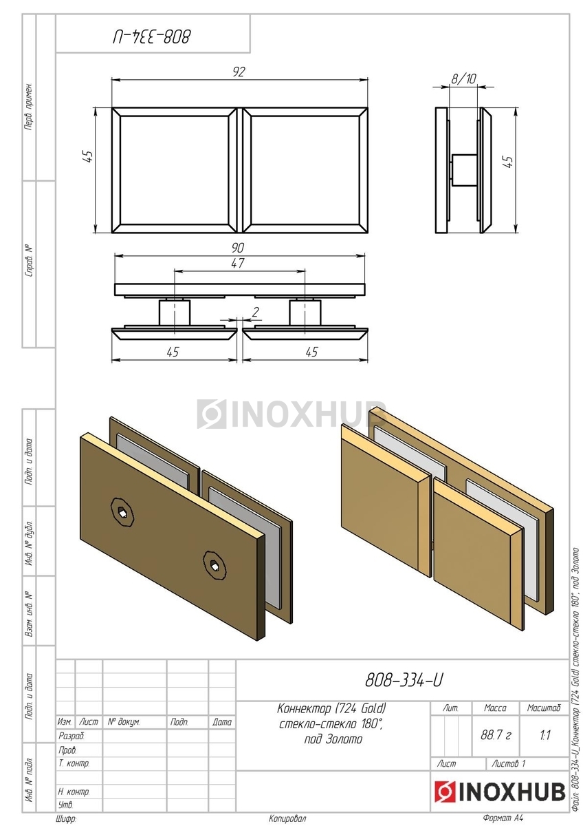 Коннектор (724 Gold) стекло-стекло 180°, под Золото в продаже. Оперативная доставка со склада в Москве. Все товары соответствуют стандартам качества.