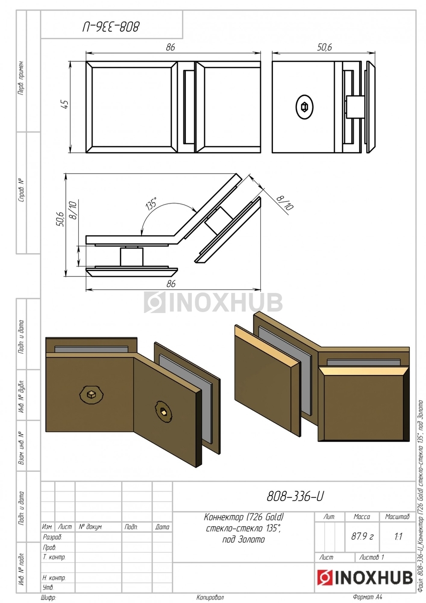 Коннектор (726 Gold) стекло-стекло 135°, под Золото в продаже. Оперативная доставка со склада в Москве. Все товары соответствуют стандартам качества.