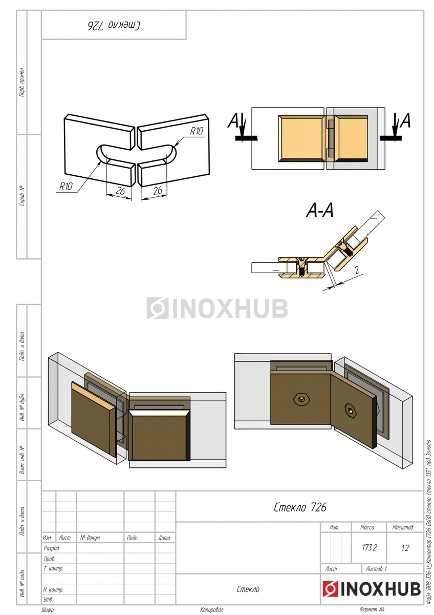 Коннектор (726 Gold) стекло-стекло 135°, под Золото, в соответствии отраслевым стандартам из коррозионно-стойкого материала. Изделие применяется в составе металлических, стеклянных или комбинированных конструкций, где важны точные размеры, прочность соединений и стабильность в эксплуатации. Может использоваться при внутреннем и наружном монтаже — в зависимости от поставленной задачи и совместимых компонентов.