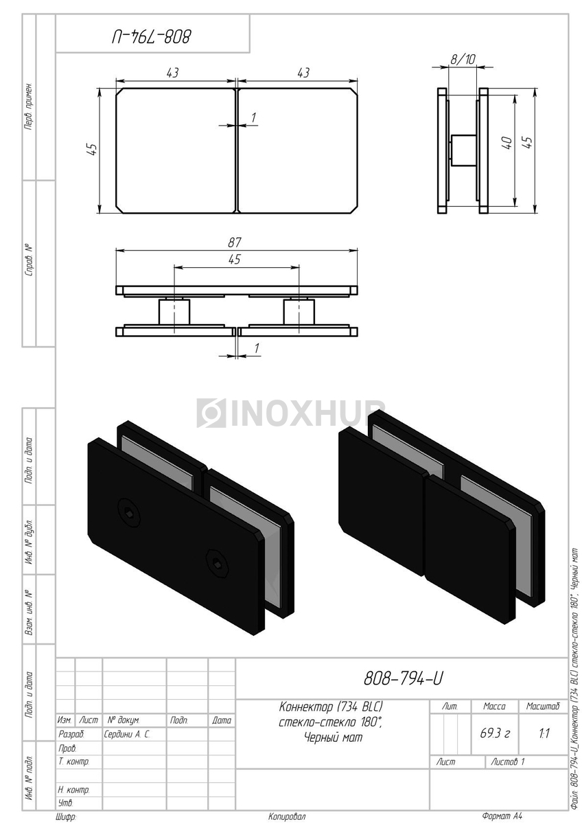 Коннектор (734 BLC) стекло-стекло 180°, Черный мат, в соответствии отраслевым стандартам из коррозионно-стойкого материала. Изделие применяется в составе металлических, стеклянных или комбинированных конструкций, где важны точные размеры, прочность соединений и стабильность в эксплуатации. Может использоваться при внутреннем и наружном монтаже — в зависимости от поставленной задачи и совместимых компонентов.