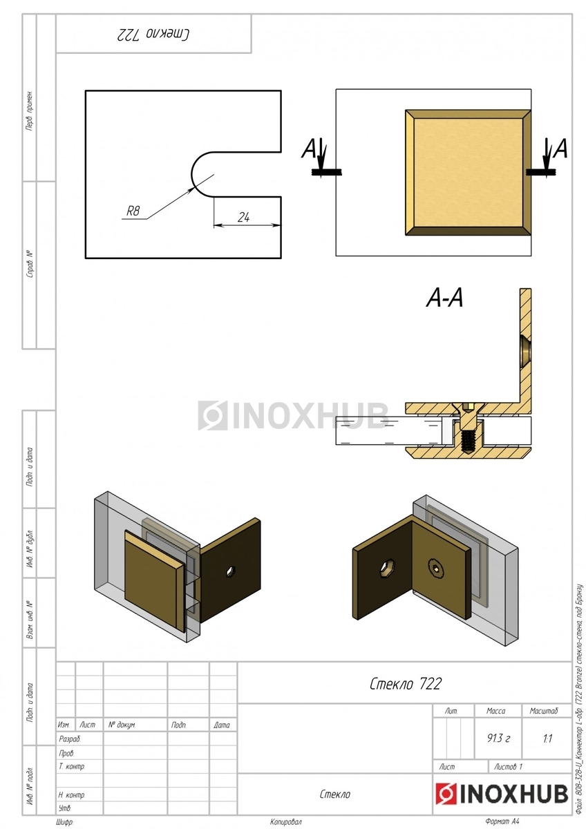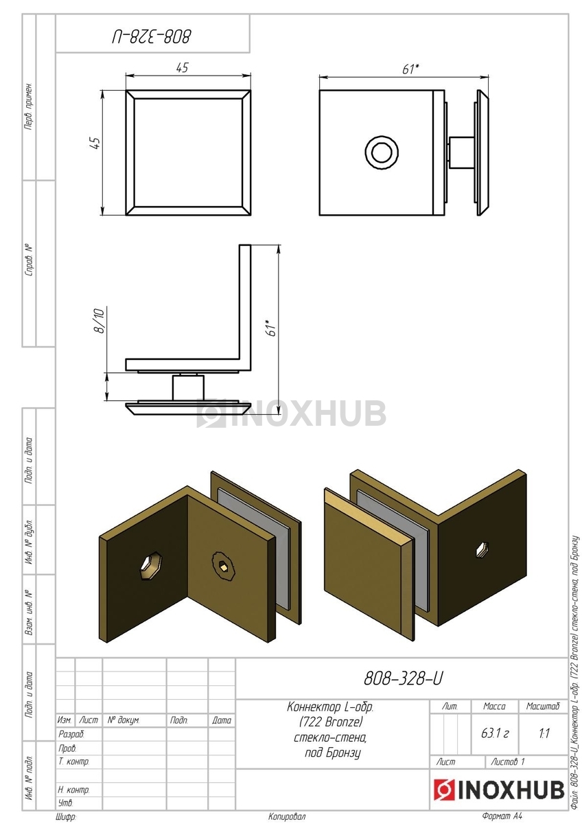 Коннектор L-обр. (722 Bronze) стекло-стена, под Бронзу в продаже. Оперативная доставка со склада в Москве. Все товары соответствуют стандартам качества.