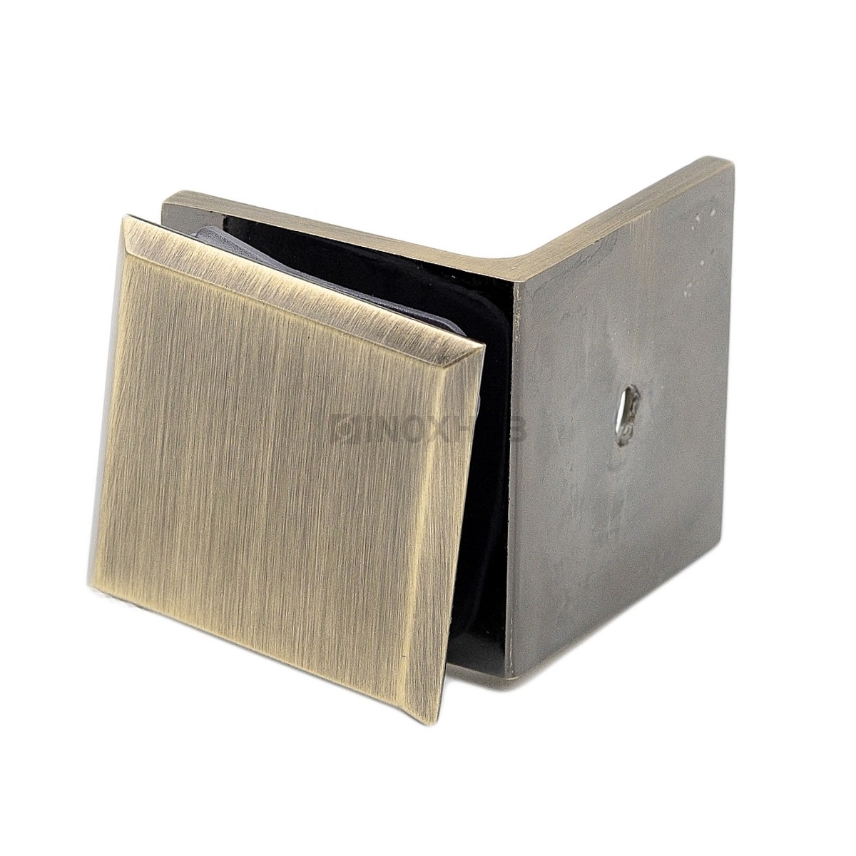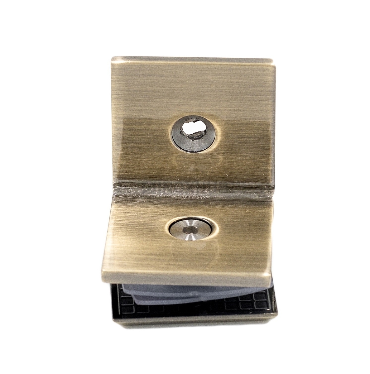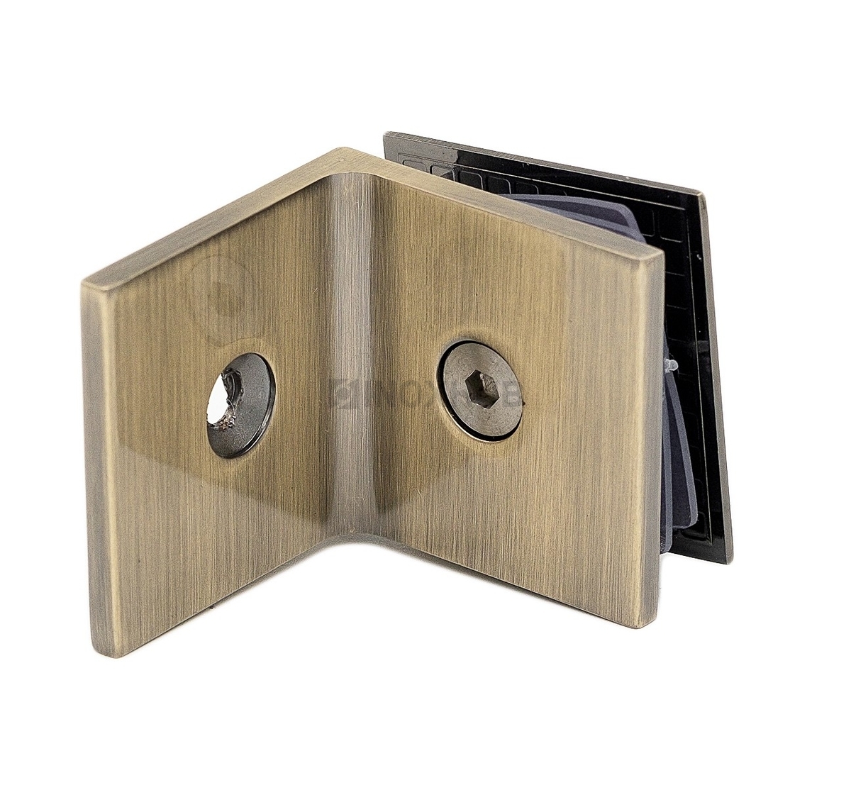 L-образный коннектор для крепления неподвижного стекла душевой кабины изготовлен из цинкового сплава. Поверхность под бронзу устойчива к воздействию влаги, не теряет своих эстетических качеств со временем. Коннектор подходит для стекол толщиной 8-10 мм.