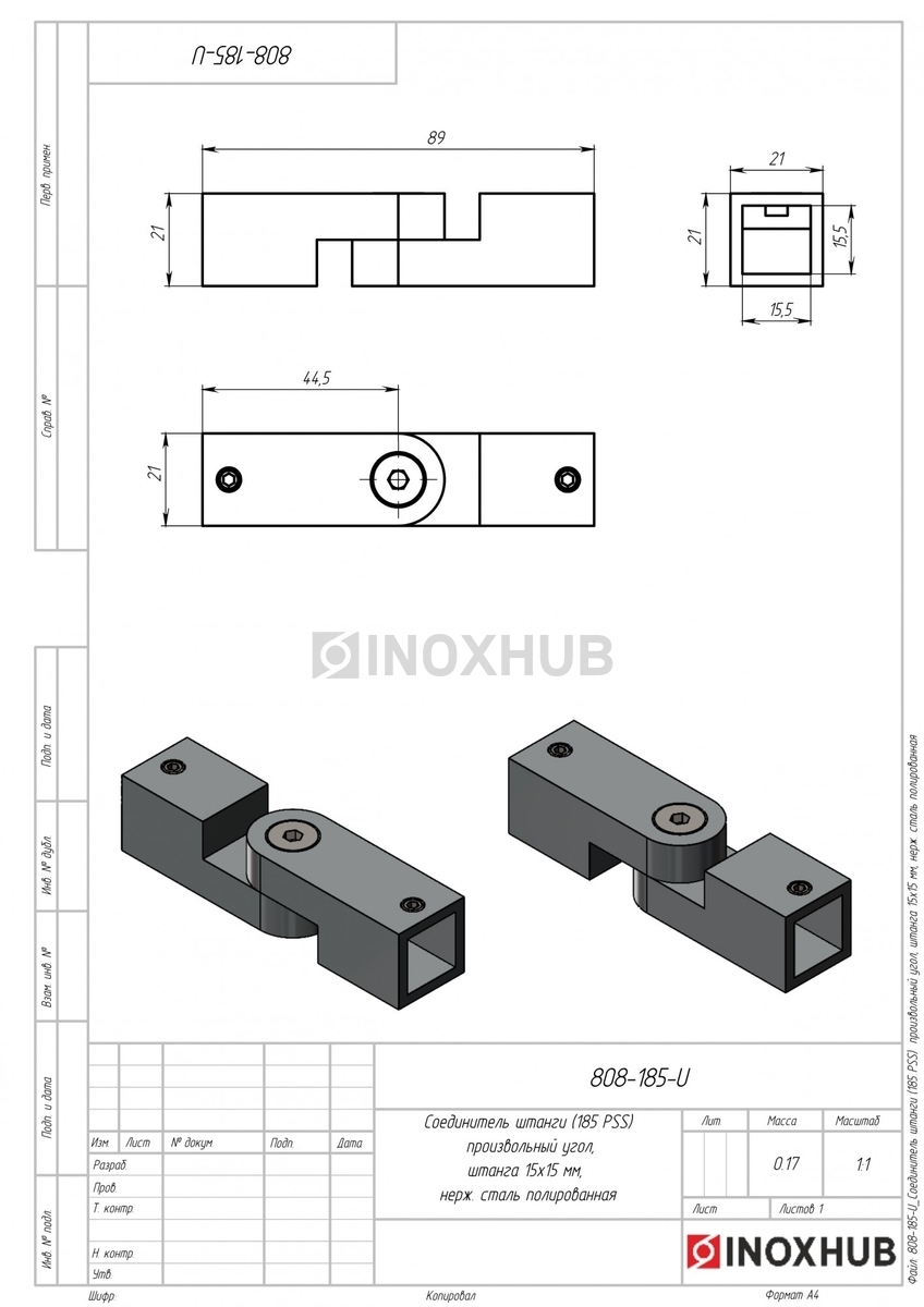 Соединитель штанги (185 PSS) произвольный угол, штанга 15×15 мм, нерж. сталь полированная в продаже. Оперативная доставка со склада в Москве. Все товары соответствуют стандартам качества.