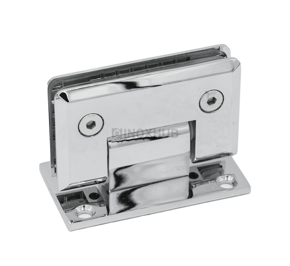 Классическая петля с Т-образной монтажной пластиной стена-стекло со скошенной кромкой изготовлена из цинкового сплава высокого качества. Полированная поверхность детали имеет глянцевый блеск, устойчива к коррозии.