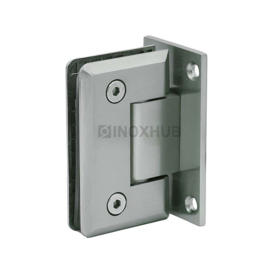 Односторонняя петля стена-стекло со скошенной кромкой изготовлена из цинкового сплава высокого качества. Отделка матовый хром эффектно смотрится в интерьере, подходит под любой цвет. На матовой отделке менее заметны пятна от мыльной пены и известковой воды. Петля подходит для стекол толщиной 8-10 мм массой 35-40 кг на обе петли. Максимальная ширина полотна — 700 мм.