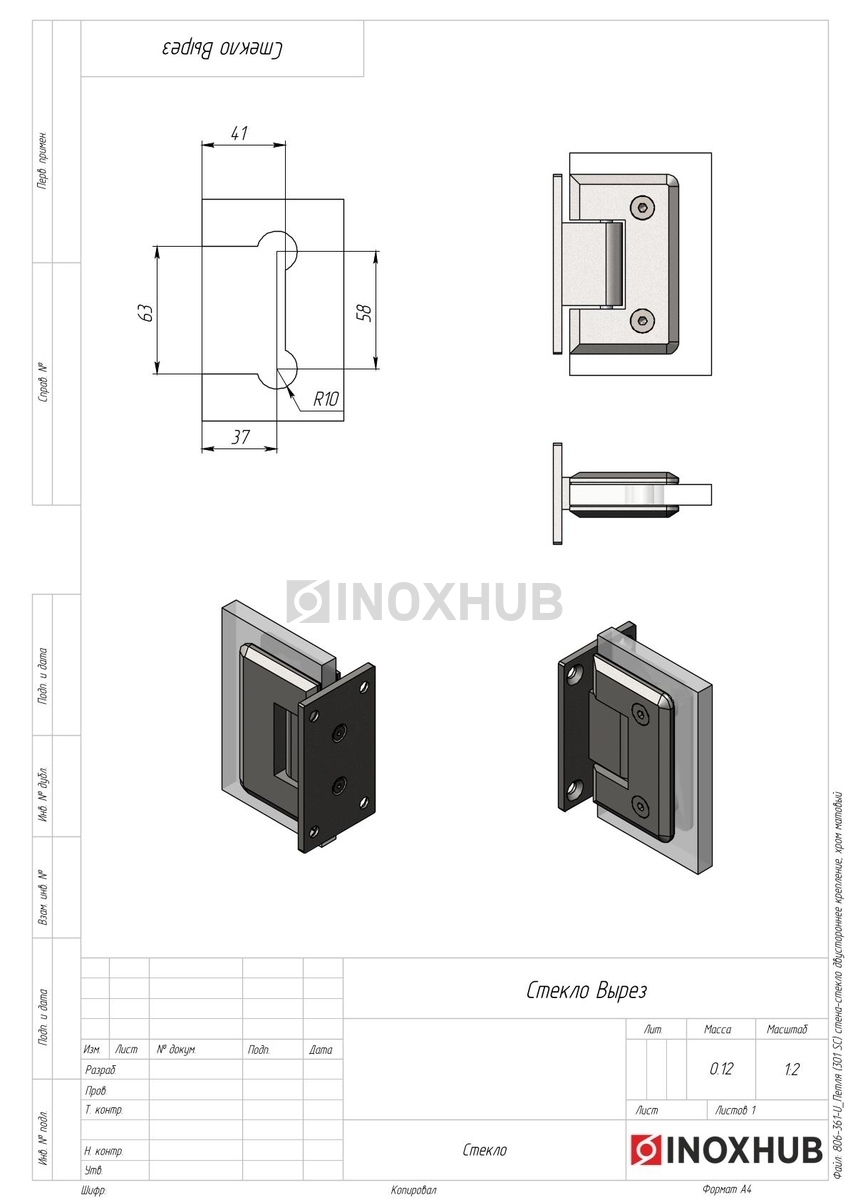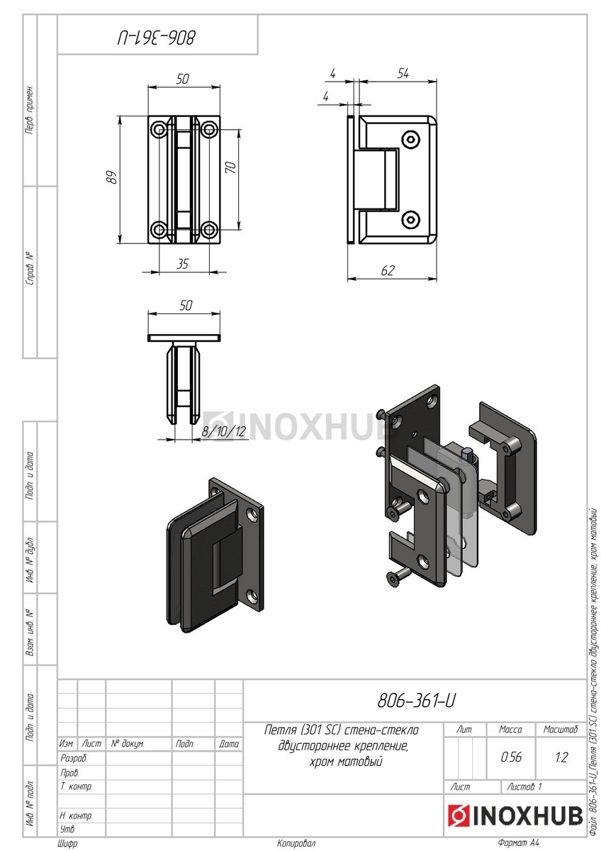 Сборка и монтаж. В комплекте поставляется все необходимое для установки. Соберите петлю и подготовьте стекло согласно схемам на чертежах. Стенки детали имеют увеличенную толщину, поэтому при монтаже стеклянной двери петли не выгибаются.