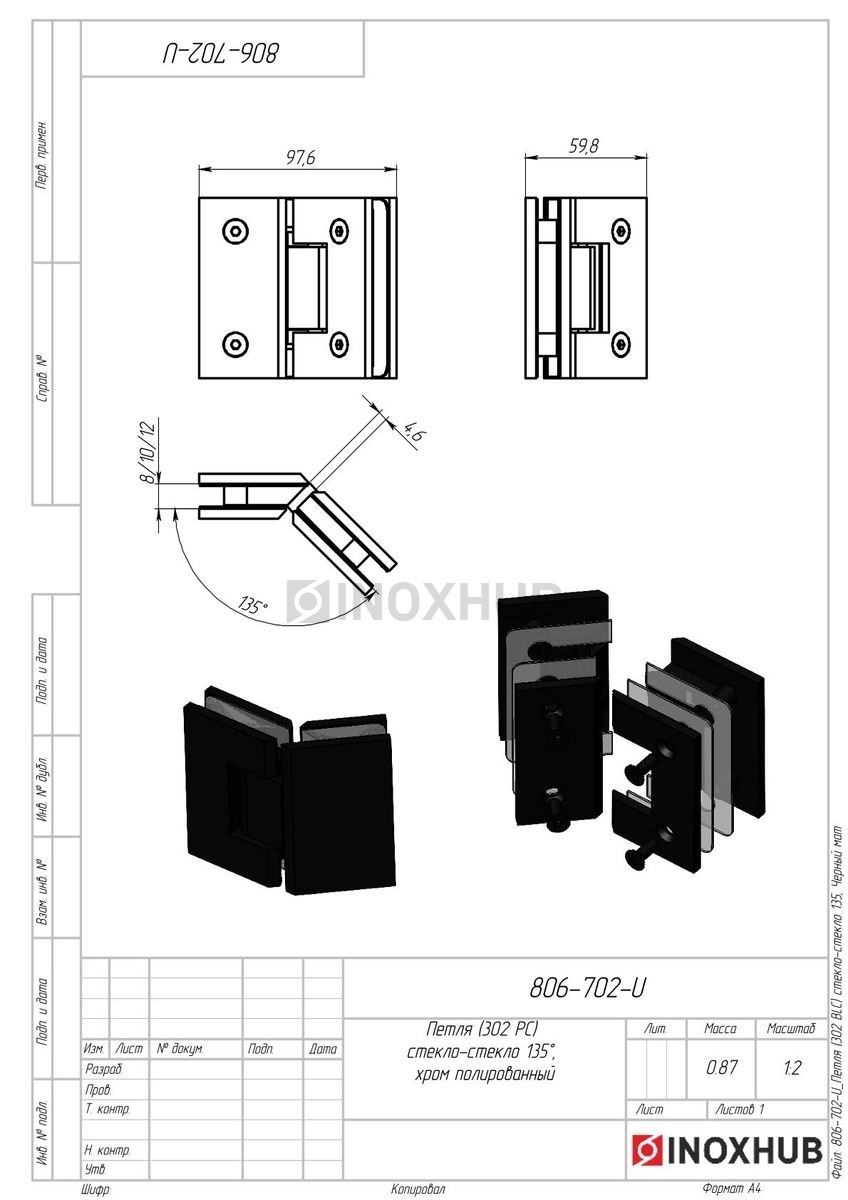 Петля (302 BLC) стекло-стекло 135°, нерж. сталь Черный мат в продаже. Оперативная доставка со склада в Москве. Все товары соответствуют стандартам качества.