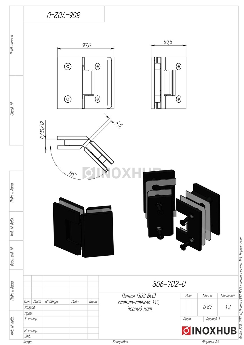 Петля (302 BLC) стекло-стекло 135°, нерж. сталь Черный мат, в соответствии отраслевым стандартам из коррозионно-стойкого материала. Изделие применяется в составе металлических, стеклянных или комбинированных конструкций, где важны точные размеры, прочность соединений и стабильность в эксплуатации. Может использоваться при внутреннем и наружном монтаже — в зависимости от поставленной задачи и совместимых компонентов.
