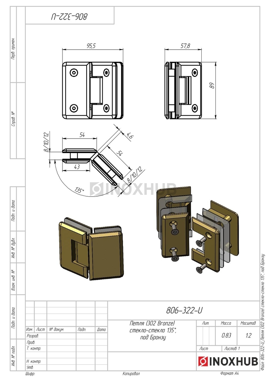 Петля (302 Bronze) стекло-стекло 135°, под Бронзу в продаже. Оперативная доставка со склада в Москве. Все товары соответствуют стандартам качества.