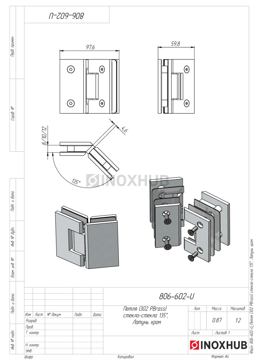 Петля (302 PBrass) стекло-стекло 135° (без фаски), латунь, полированный хром, в соответствии отраслевым стандартам из коррозионно-стойкого материала. Изделие применяется в составе металлических, стеклянных или комбинированных конструкций, где важны точные размеры, прочность соединений и стабильность в эксплуатации. Может использоваться при внутреннем и наружном монтаже — в зависимости от поставленной задачи и совместимых компонентов.