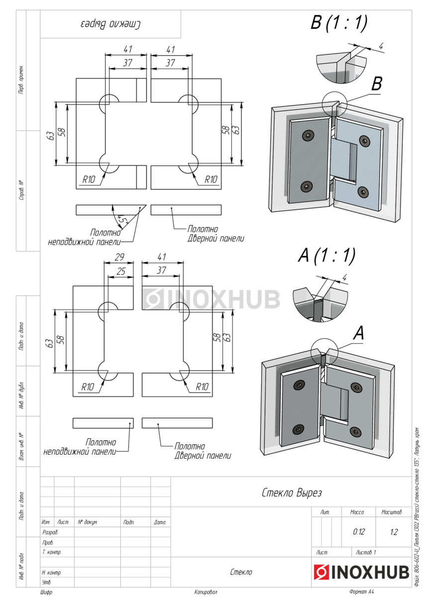Сборка и монтаж. В комплекте поставляется все необходимое для установки. Для прочной фиксации стекла используются прокладки. Соберите петлю и подготовьте отверстия в стеклопанелях согласно схемам на чертежах.