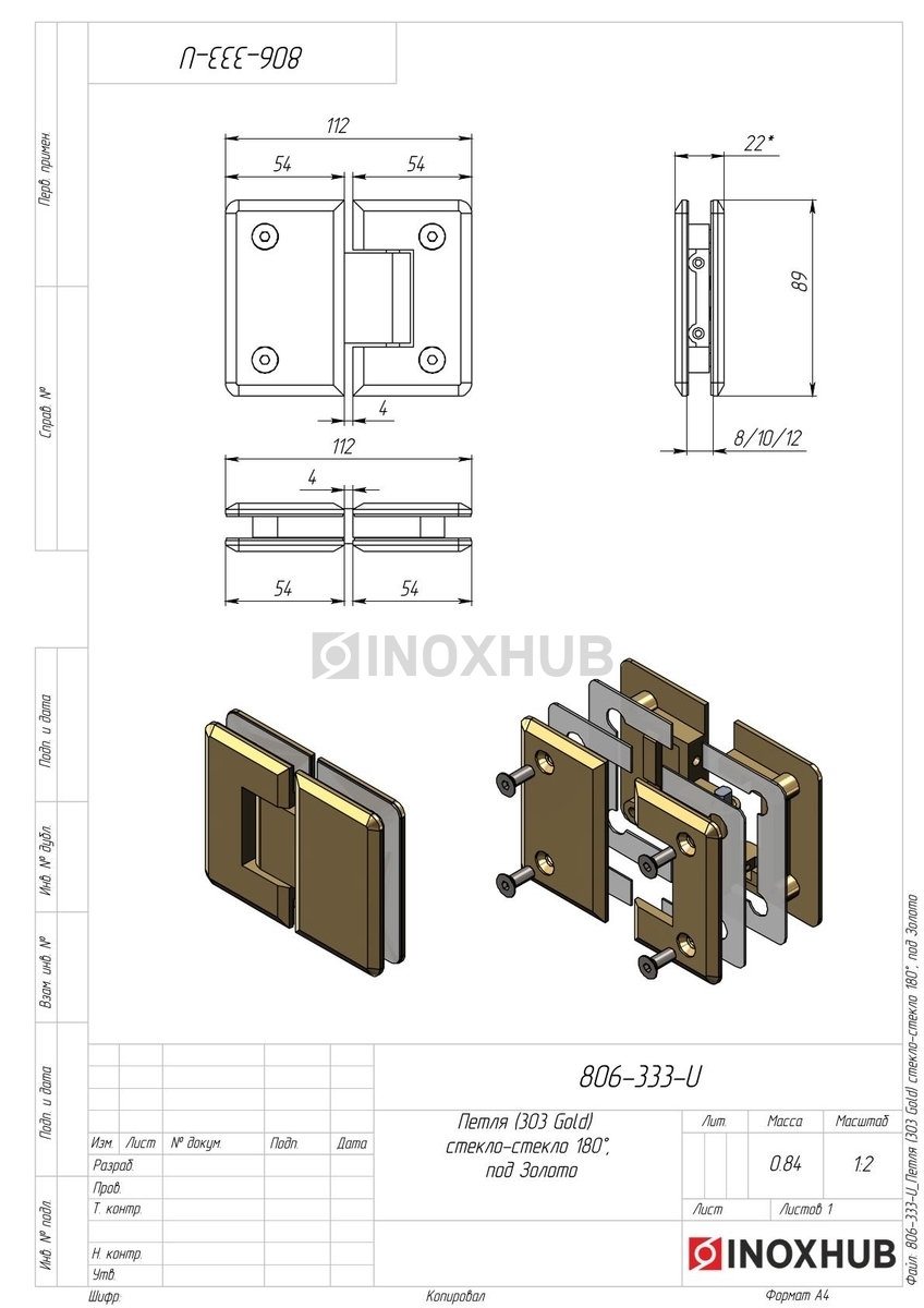 Петля (303 Gold) стекло-стекло 180°, под Золото, в соответствии отраслевым стандартам из коррозионно-стойкого материала. Изделие применяется в составе металлических, стеклянных или комбинированных конструкций, где важны точные размеры, прочность соединений и стабильность в эксплуатации. Может использоваться при внутреннем и наружном монтаже — в зависимости от поставленной задачи и совместимых компонентов.