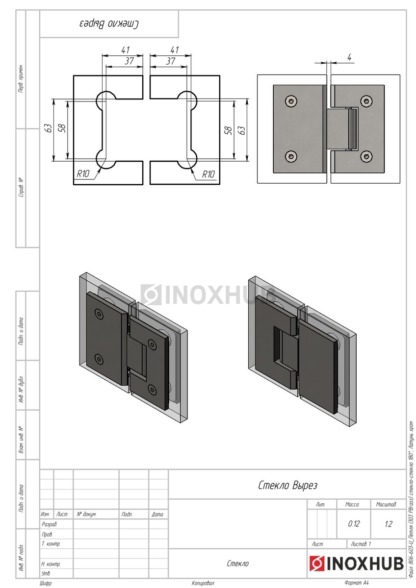 Сборка и монтаж. В комплекте поставляется все необходимое для установки. Для прочной фиксации стекла используются прокладки. Соберите петлю и подготовьте отверстия в стеклопанелях согласно схемам на чертежах.