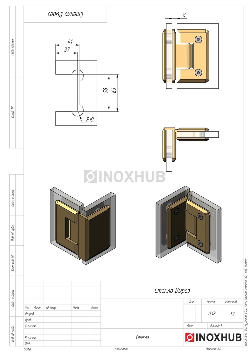 Петля (304 Gold) стекло-стекло 90°, под Золото в продаже. Оперативная доставка со склада в Москве. Все товары соответствуют стандартам качества.