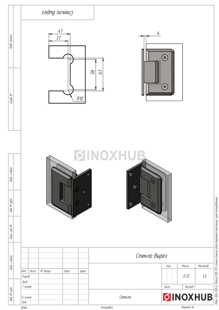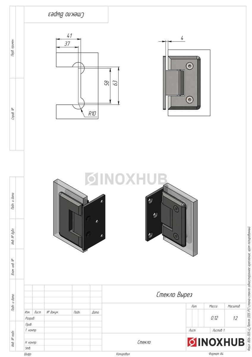 Сборка и монтаж. В комплекте поставляется все необходимое для установки. Соберите петлю и подготовьте стекло согласно схемам на чертежах. Стенки детали имеют увеличенную толщину, поэтому при монтаже стеклянной двери петли не выгибаются.