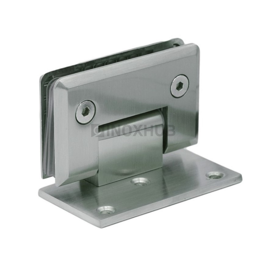Односторонняя петля стена-стекло со скошенной кромкой изготовлена из цинкового сплава высокого качества. Отделка матовый хром эффектно смотрится в интерьере, подходит под любой цвет. На матовой отделке менее заметны пятна от мыльной пены и известковой воды. Петля подходит для стекол толщиной 8-12 мм массой 35-40 кг на обе петли. Максимальная ширина полотна — 700 мм.