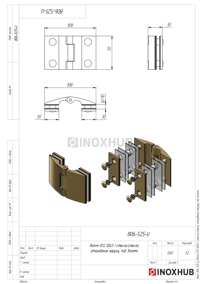 Петля (512 Gold) стекло-стекло, открывание наружу, под Золото в продаже. Оперативная доставка со склада в Москве. Все товары соответствуют стандартам качества.
