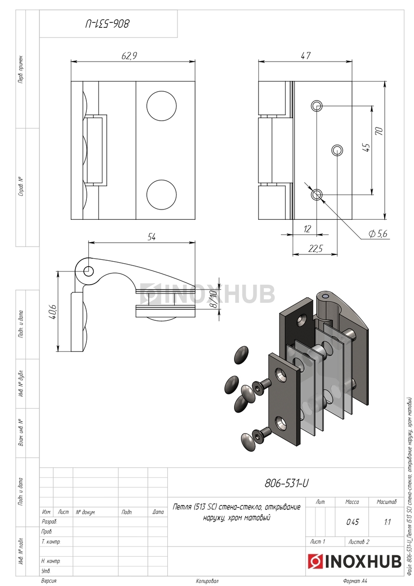 Петля (513 SC) стена-стекло, открывание наружу, матовый хром в продаже. Оперативная доставка со склада в Москве. Все товары соответствуют стандартам качества.