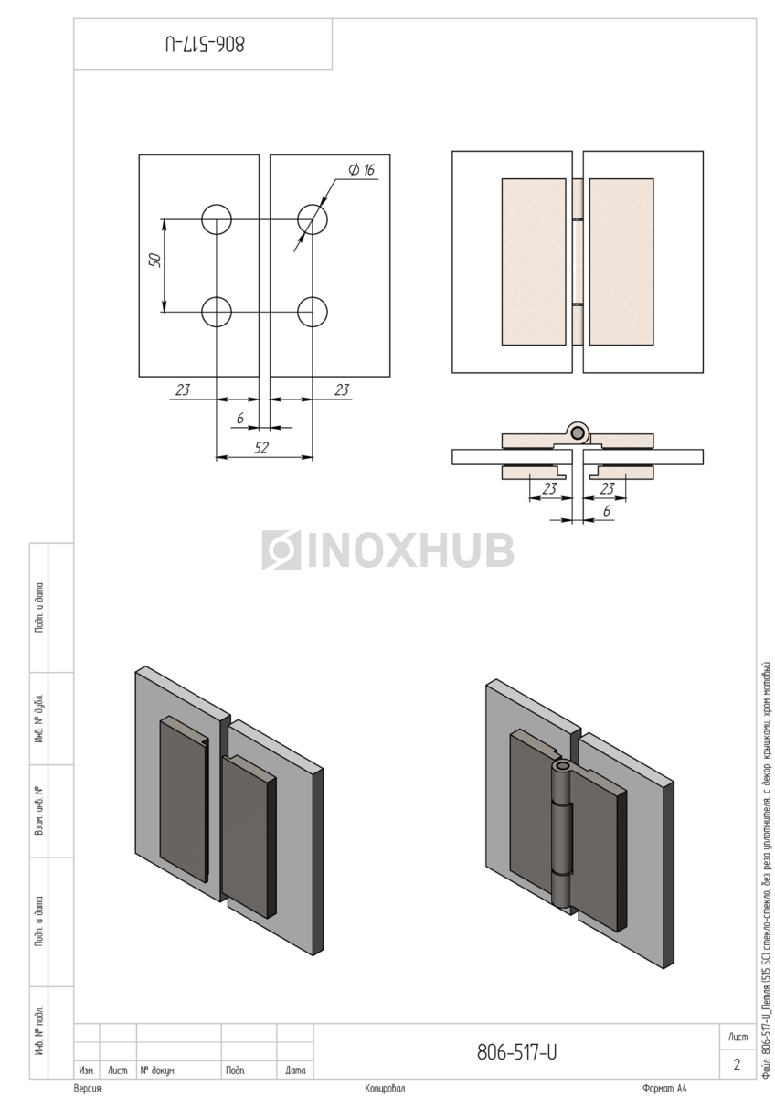 Сборка и монтаж. Подготовьте отверстия в стекле и двери согласно чертежу. Петля не требует реза уплотнителя, все крепежные элементы и втулки поставляются в комплекте. Модель устанавливается на шестигранные винты. Декоративные крышки скрывают крепежные элементы.