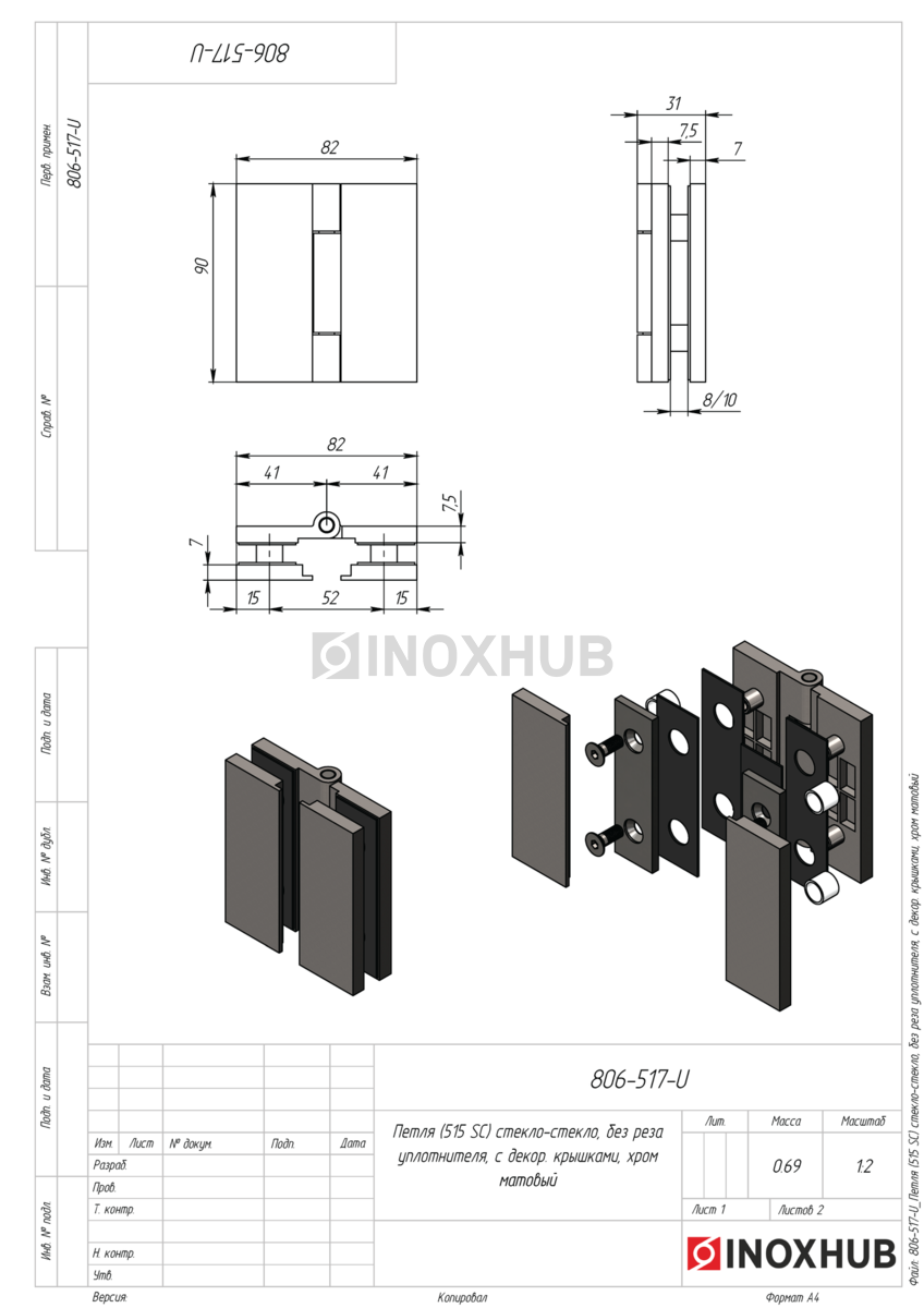 Петля (515 SC) стекло-стекло, без реза уплотнителя, с декоративными крышками, матовый хром в продаже. Оперативная доставка со склада в Москве. Все товары соответствуют стандартам качества.