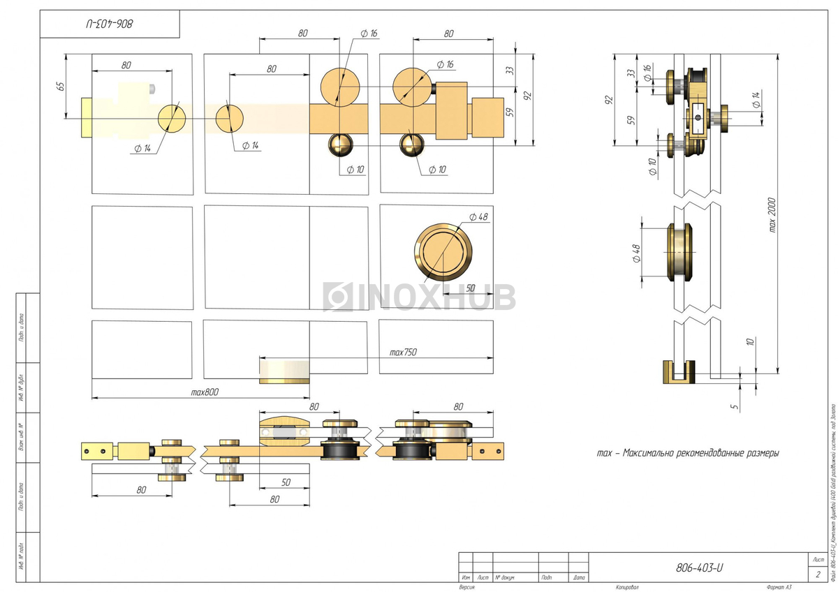 Максимальные размеры створки при консольном закреплении трека – 500х2000 мм.