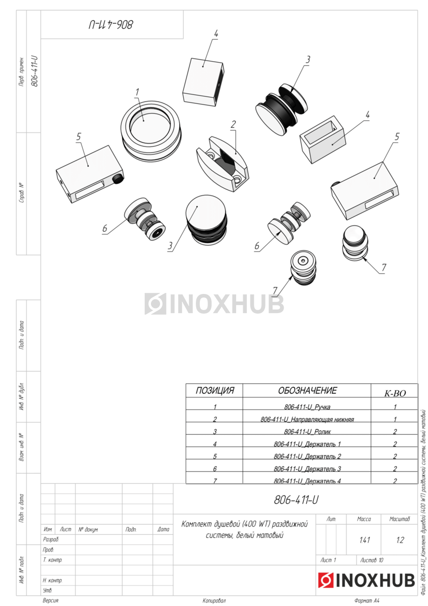 Комплект душевой (400 WT) раздвижной системы, белый матовый, в соответствии отраслевым стандартам из коррозионно-стойкого материала. Изделие применяется в составе металлических, стеклянных или комбинированных конструкций, где важны точные размеры, прочность соединений и стабильность в эксплуатации. Может использоваться при внутреннем и наружном монтаже — в зависимости от поставленной задачи и совместимых компонентов.