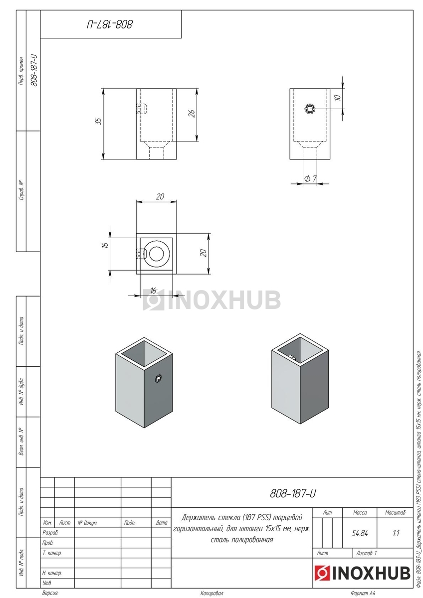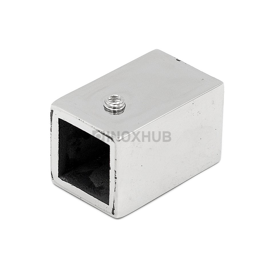 Торцевой держатель стена-штанга 15х15 мм изготовлен из нержавеющей стали марки AISI 304. Коннектор устойчив к воздействию влаги, перепадов температур, моющих средств. Сталь этой марки обладает высокой прочностью, менее подвержена коррозии по сравнению с цинковыми сплавами. Полированная поверхность имеет глянцевый блеск, не мутнеет со временем, надолго сохраняет первоначальный вид.