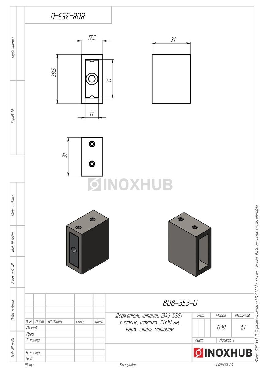 Держатель штанги (343 SSS) к стене, штанга 30×10 мм, нерж. сталь матовая, в соответствии отраслевым стандартам из коррозионно-стойкого материала. Изделие применяется в составе металлических, стеклянных или комбинированных конструкций, где важны точные размеры, прочность соединений и стабильность в эксплуатации. Может использоваться при внутреннем и наружном монтаже — в зависимости от поставленной задачи и совместимых компонентов.