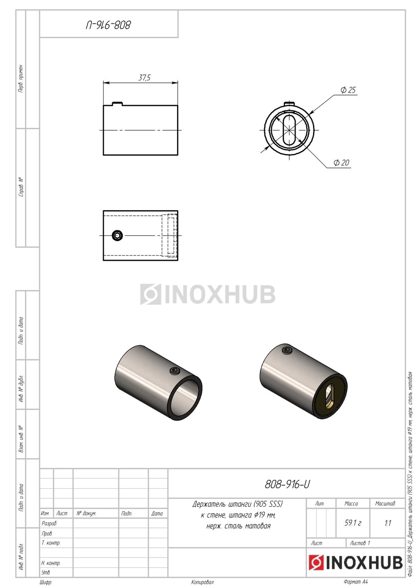 Держатель штанги (905 SSS) к стене, штанга Ø19 мм, нерж. сталь матовая в продаже. Оперативная доставка со склада в Москве. Все товары соответствуют стандартам качества.