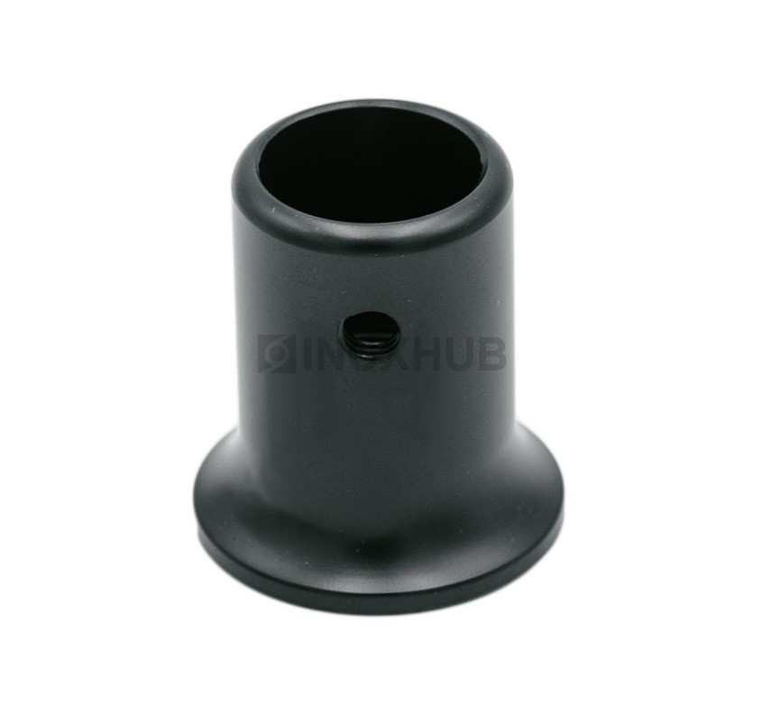 Сборка и монтаж. Держатель монтируется быстро и надежно. Монтажная муфта с резьбой фиксируется на стену. Овальное отверстие позволяет точно подогнать расположение элемента при неровном сверлении стены. Держатель надевают на штангу, накручивают на муфту. Чтобы труба не прокручивалась, ее фиксируют винтом.