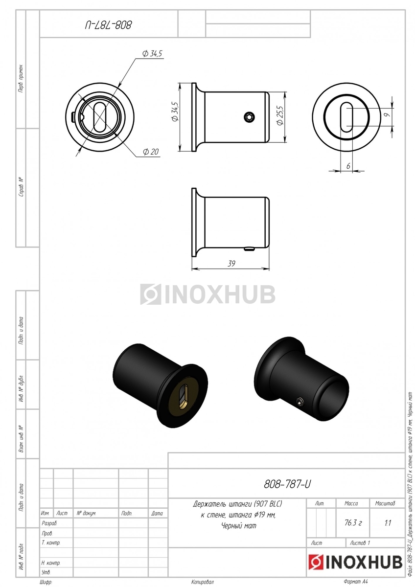 Держатель штанги (907 BLC) к стене, штанга Ø19 мм, Черный мат в продаже. Оперативная доставка со склада в Москве. Все товары соответствуют стандартам качества.