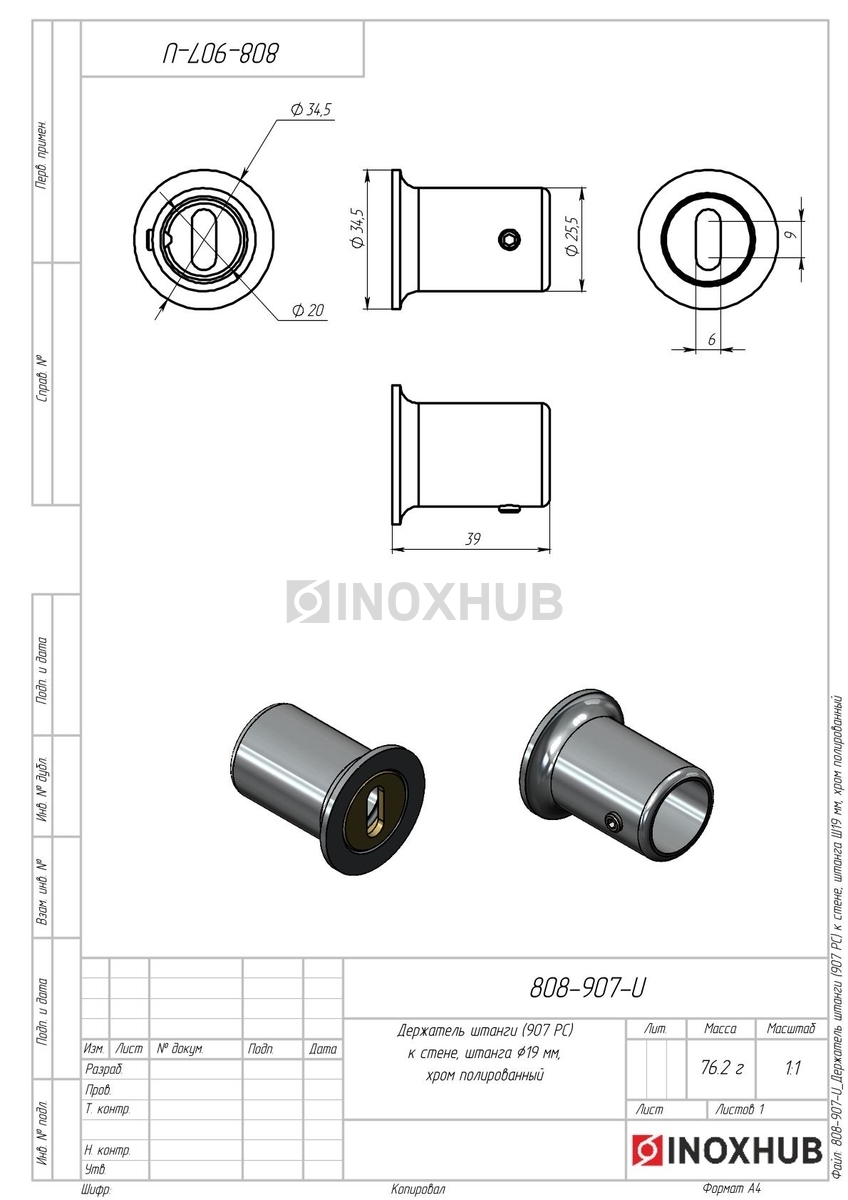 Держатель штанги (907 PC) к стене, штанга Ø19 мм, полированный хром в продаже. Оперативная доставка со склада в Москве. Все товары соответствуют стандартам качества.