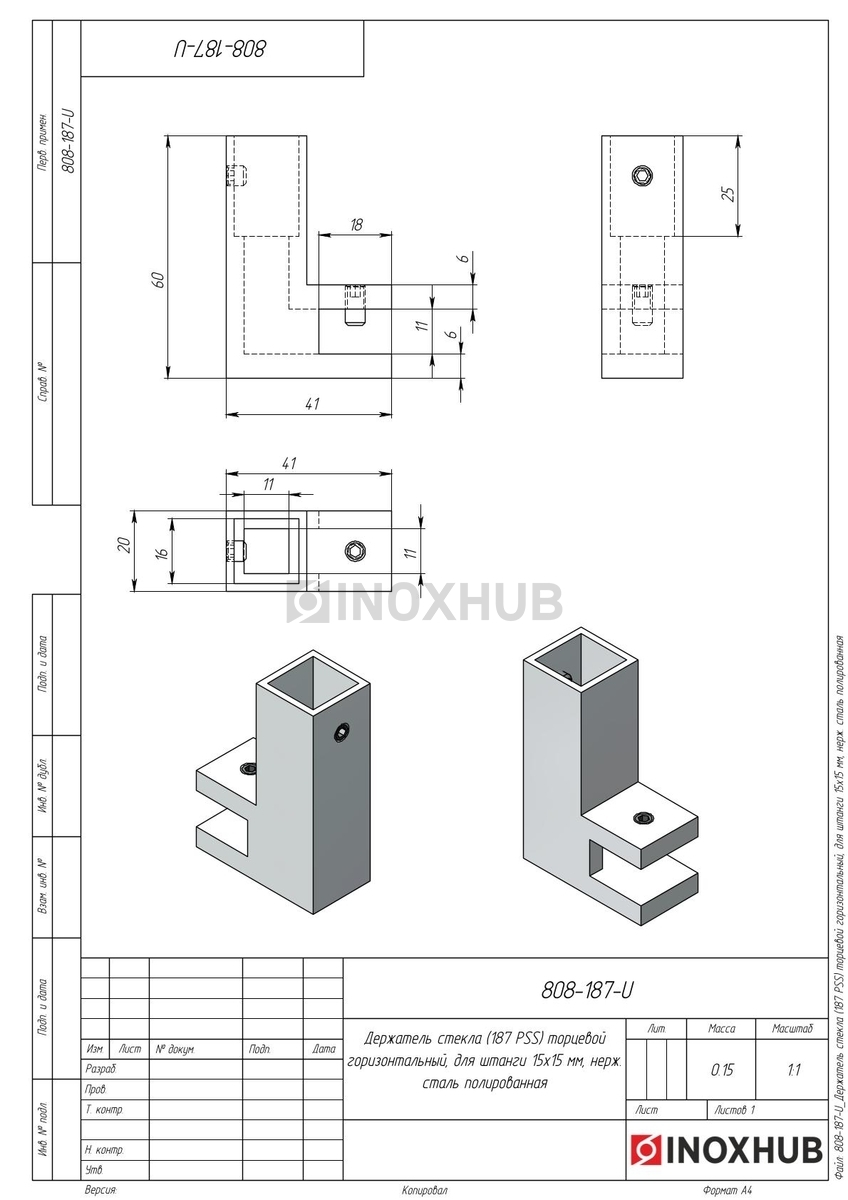 Держатель стекла (187 PSS) торцевой горизонтальный, для штанги 15×15 мм, нерж. сталь полированная, в соответствии отраслевым стандартам из коррозионно-стойкого материала. Изделие применяется в составе металлических, стеклянных или комбинированных конструкций, где важны точные размеры, прочность соединений и стабильность в эксплуатации. Может использоваться при внутреннем и наружном монтаже — в зависимости от поставленной задачи и совместимых компонентов.