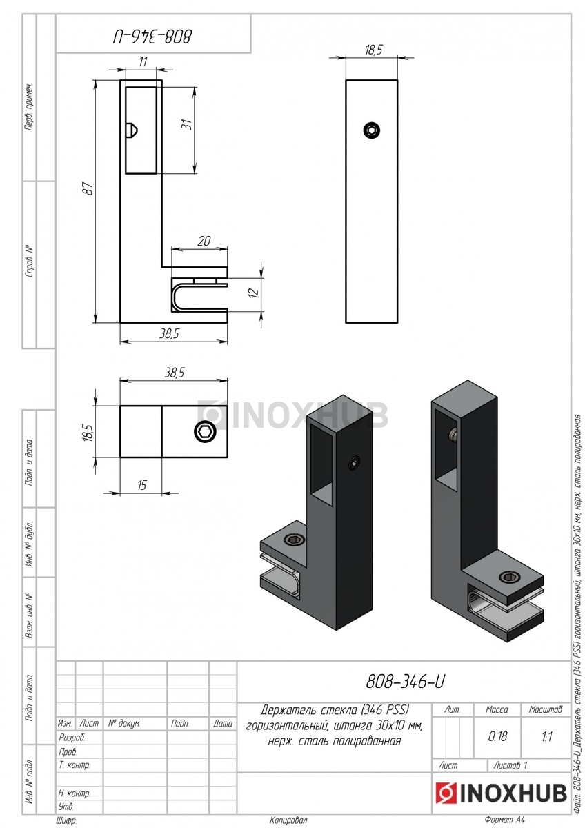 Держатель стекла (346 PSS) горизонтальный, штанга 30×10 мм, нерж. сталь полированная, в соответствии отраслевым стандартам из коррозионно-стойкого материала. Изделие применяется в составе металлических, стеклянных или комбинированных конструкций, где важны точные размеры, прочность соединений и стабильность в эксплуатации. Может использоваться при внутреннем и наружном монтаже — в зависимости от поставленной задачи и совместимых компонентов.