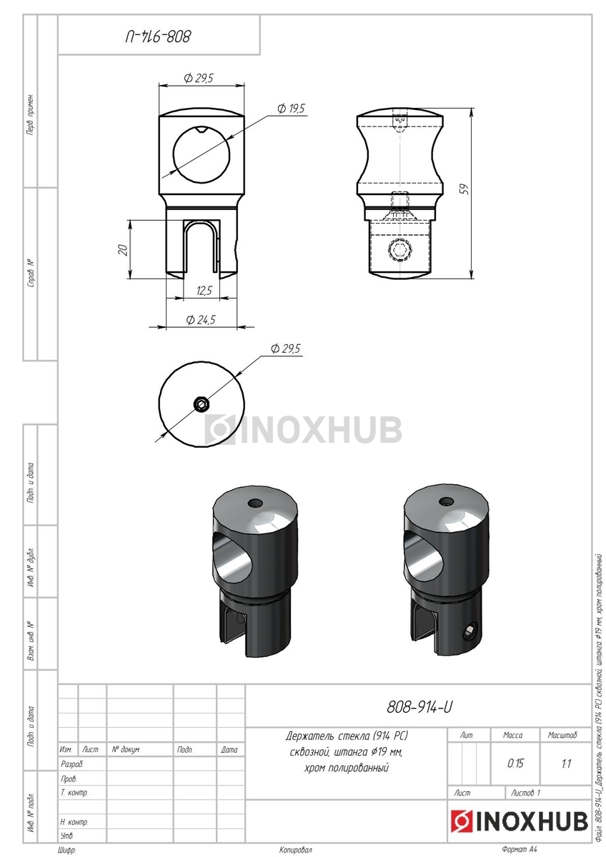 Держатель стекла (914 PC) сквозной, штанга Ø19 мм, полированный хром в продаже. Оперативная доставка со склада в Москве. Все товары соответствуют стандартам качества.