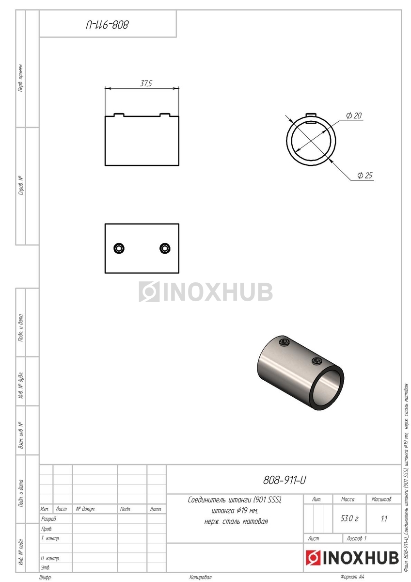 Соединитель штанги (901 SSS), штанга Ø19 мм, нерж. сталь матовая в продаже. Оперативная доставка со склада в Москве. Все товары соответствуют стандартам качества.