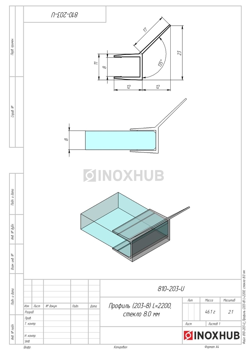 Профиль (203-8), L=2200, стекло 8.0 мм в продаже. Оперативная доставка со склада в Москве. Все товары соответствуют стандартам качества.