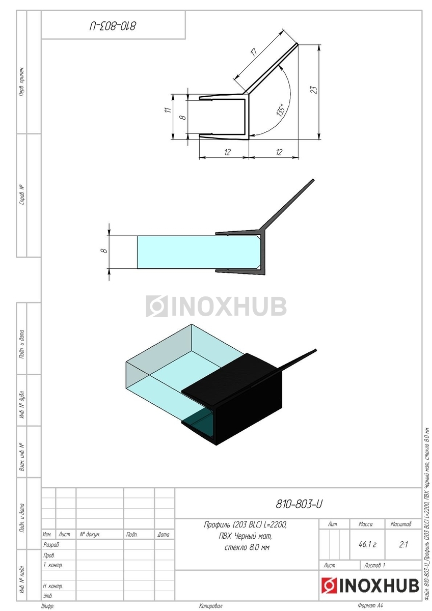 Профиль (203-8 BLC), L=2200, стекло 8.0 мм, ПВХ Черный мат в продаже. Оперативная доставка со склада в Москве. Все товары соответствуют стандартам качества.