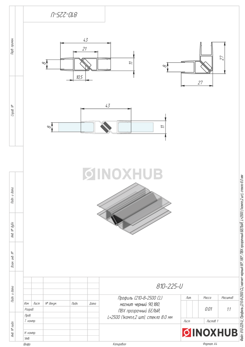 Профиль (210-8-2500 CL) магнит черный 90º/180º, L=2500 (1 компл/2шт), стекло 8.0 мм, ПВХ прозрачный БЕЛЫЙ в продаже. Оперативная доставка со склада в Москве. Все товары соответствуют стандартам качества.