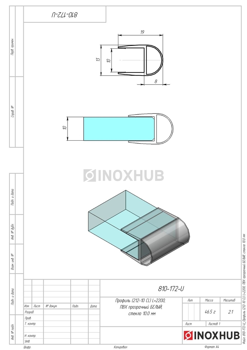 Профиль (212-10 CL), L=2200, стекло 10.0 мм, ПВХ прозрачный БЕЛЫЙ в продаже. Оперативная доставка со склада в Москве. Все товары соответствуют стандартам качества.