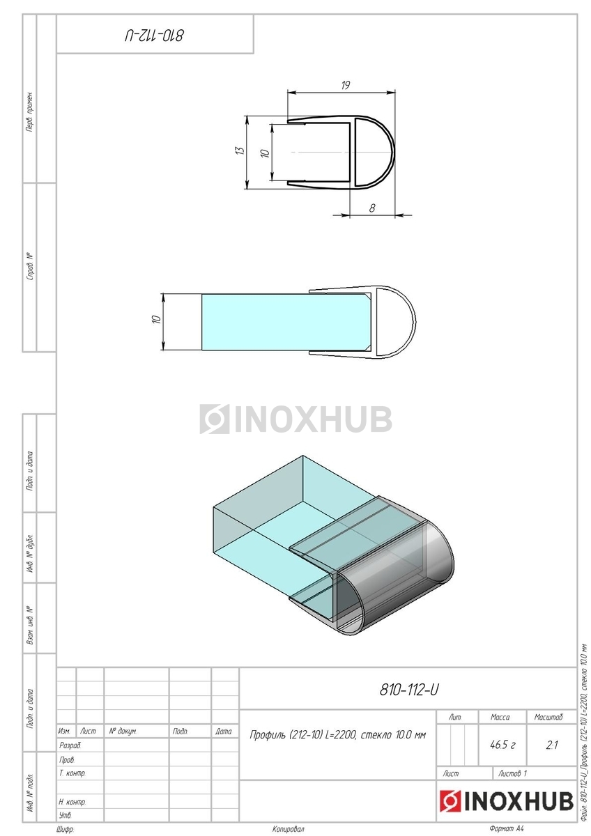 Профиль (212-10), L=2200, стекло 10.0 мм в продаже. Оперативная доставка со склада в Москве. Все товары соответствуют стандартам качества.