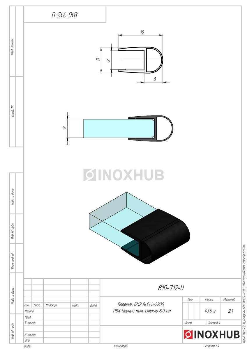 Профиль (212-8 BLC), L=2200, стекло 8.0 мм, ПВХ Черный мат в продаже. Оперативная доставка со склада в Москве. Все товары соответствуют стандартам качества.