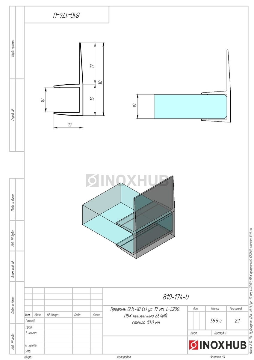Профиль (214-10 CL) ус 17 мм, L=2200, стекло 10.0 мм, ПВХ прозрачный БЕЛЫЙ в продаже. Оперативная доставка со склада в Москве. Все товары соответствуют стандартам качества.