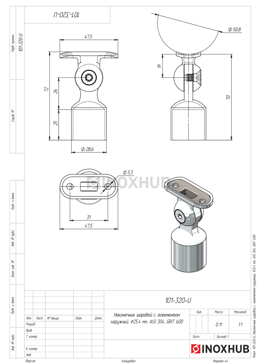 Наконечник шаровой рег. литой наружный, Ø25.4 мм, AISI 304, GRIT 600, в соответствии отраслевым стандартам из коррозионно-стойкого материала. Изделие применяется в составе металлических, стеклянных или комбинированных конструкций, где важны точные размеры, прочность соединений и стабильность в эксплуатации. Может использоваться при внутреннем и наружном монтаже — в зависимости от поставленной задачи и совместимых компонентов.