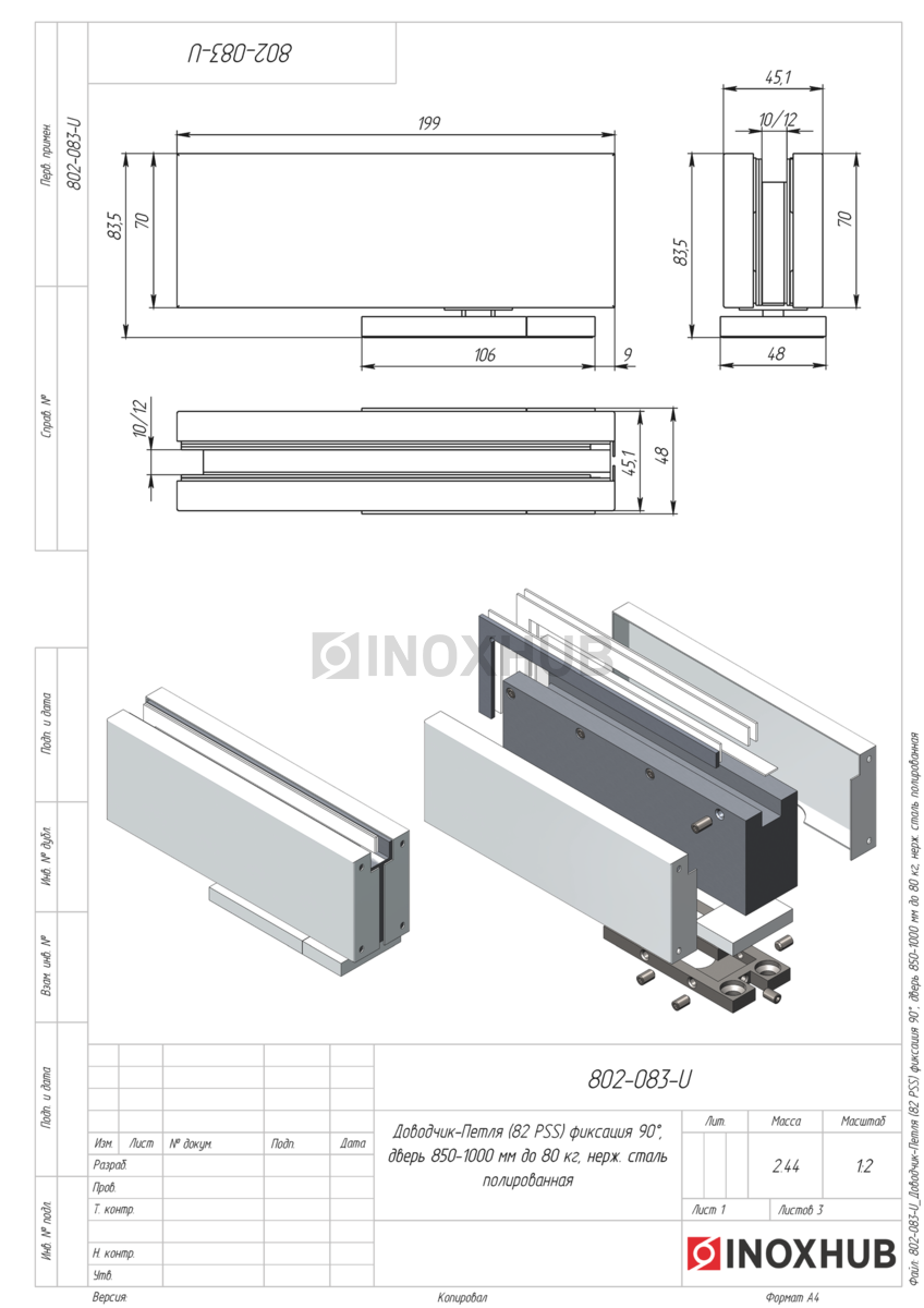 Доводчик-Петля (85 PSS) фиксация 90°, дверь 850-1000 мм до 80 кг, нерж. сталь полированная, в соответствии отраслевым стандартам из коррозионно-стойкого материала. Изделие применяется в составе металлических, стеклянных или комбинированных конструкций, где важны точные размеры, прочность соединений и стабильность в эксплуатации. Может использоваться при внутреннем и наружном монтаже — в зависимости от поставленной задачи и совместимых компонентов.