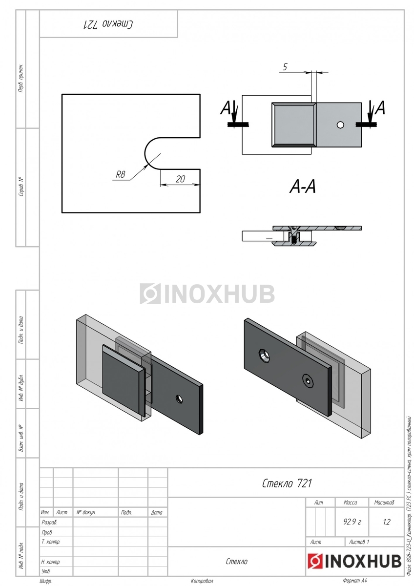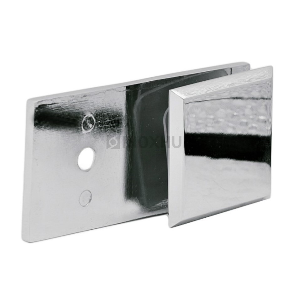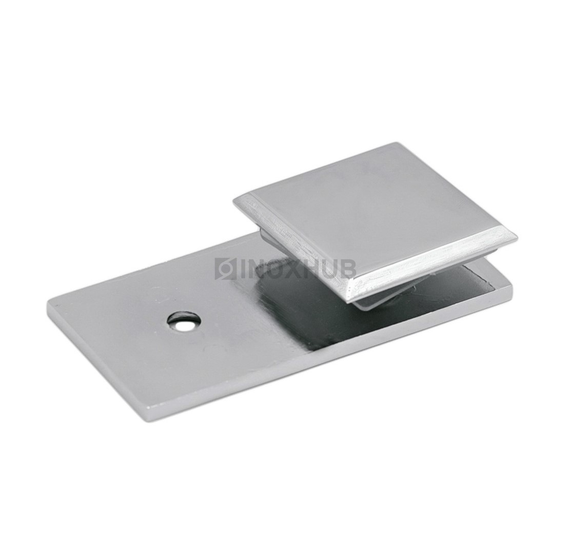 Сборка и монтаж. Коннектор состоит из двух частей — монтажная пластина с двумя отверстиями и прижимная пластина с втулкой для винта. Монтажная площадка крепится к стене с помощью дюбеля и самореза. Стекло прижимается между пластинами через уплотнитель, фиксируется винтовым крепежом.