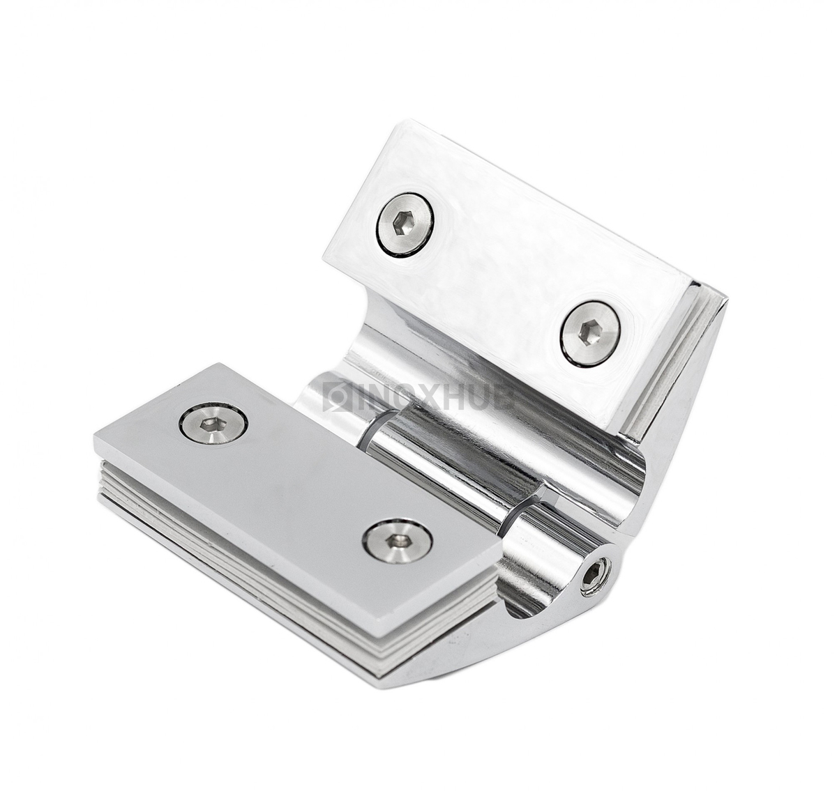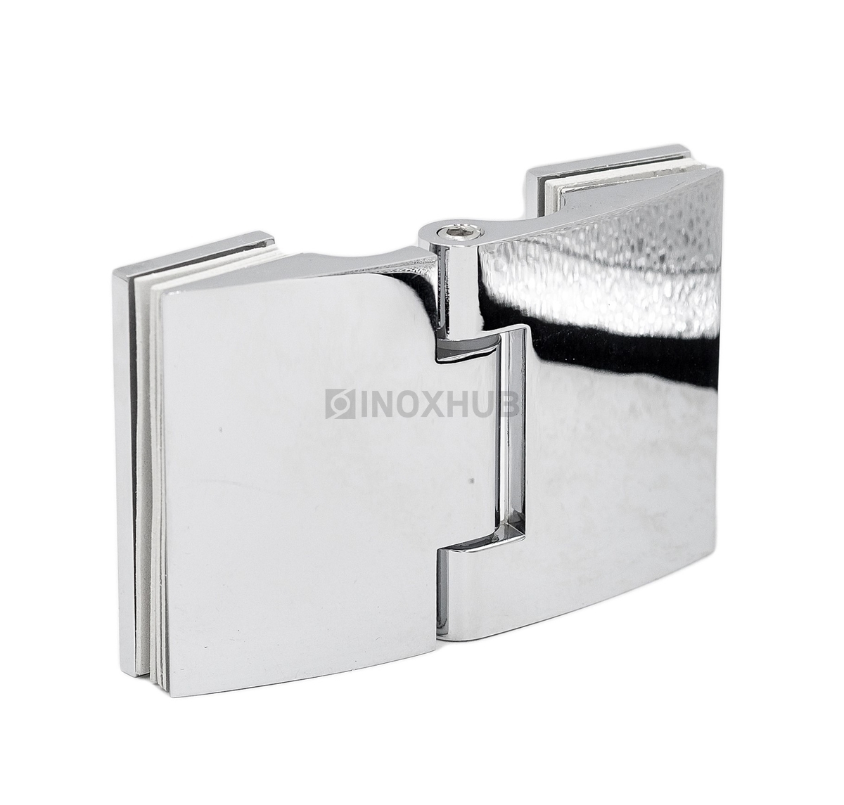 Применение. Петля используется для крепления стеклянной двери душевой кабины или перегородки. Элемент обеспечивает открывание на 90° на внешнюю сторону. Монтаж производится на стационарное стекло в одной плоскости с дверью. Модель подходит для стекол шириной 8-10 мм. Рекомендуемая ширина полотна — 600 мм при весе двери 30 кг на обе петли.