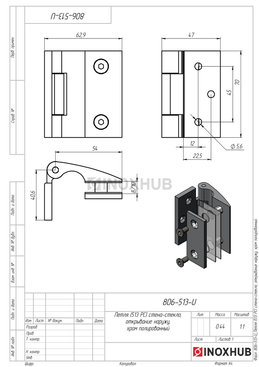 Петля (513 PC) стена-стекло, открывание наружу, полированный хром в продаже. Оперативная доставка со склада в Москве. Все товары соответствуют стандартам качества.